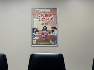 公司已配置两名专职调解员助理,负责日常咨询引导、档案管理等工作,并严格执行监管规定及公司内部制度。目前,工作室已按标准悬挂标识标牌、张贴宣传海报,陈列金融知识普及材料,着力营造专业、温馨、便民的调解环境。